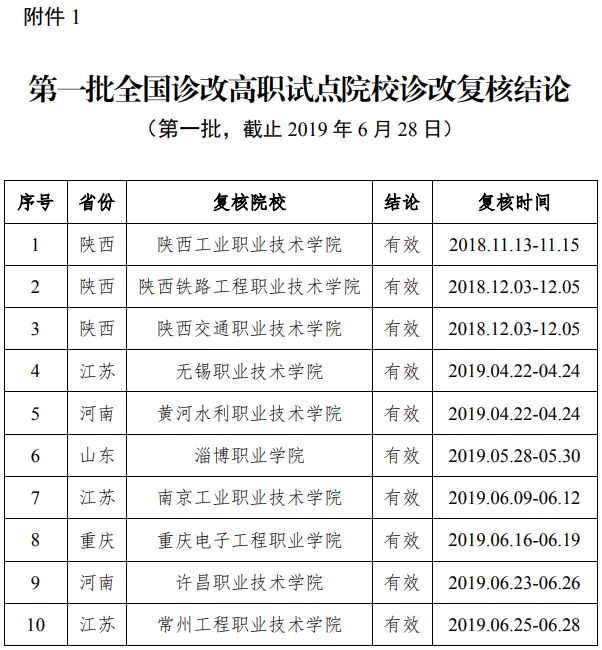 附件:1.全国诊改高职试点院校诊改复核结论(第一批)