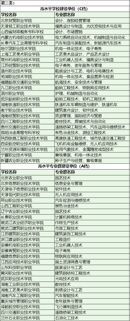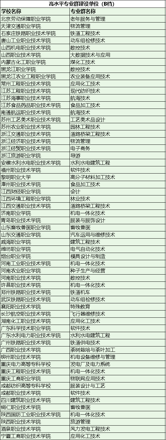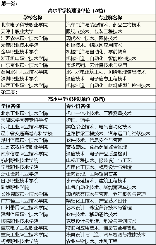 中国特色高水平高职学校和专业建设计划建设单位名单