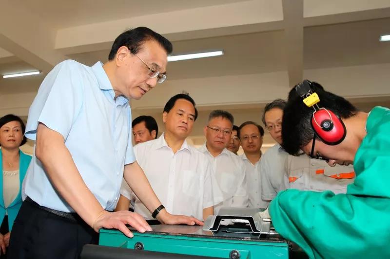 在实训车间,李克强勉励同学们说,国家不仅需要高端科研人才,也非常需要高技能人才,你们有真正的技术,就业门路就广,收入也会较高。希望大家注重培养专业精神、职业精神、工匠精神,这是成为人才很重要的素质。