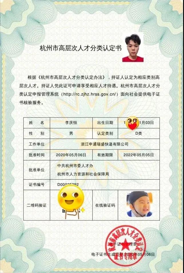 获杭州市高层次人才认定资格
