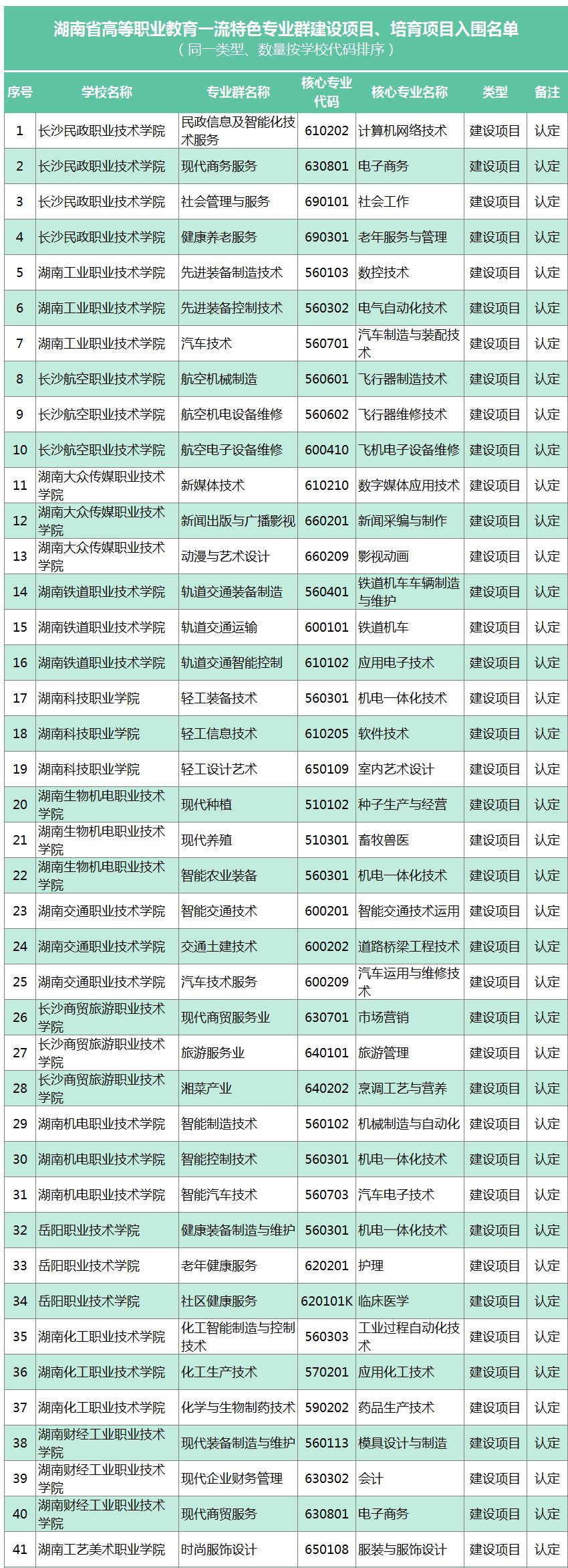 近日,湖南省教育厅公布了湖南第三批卓越高职院校及高职一流特色专业群建设(培育)项目名单,5所卓越高职院校、120个湖南省一流特色专业群建设项目及18个培育项目入围。
