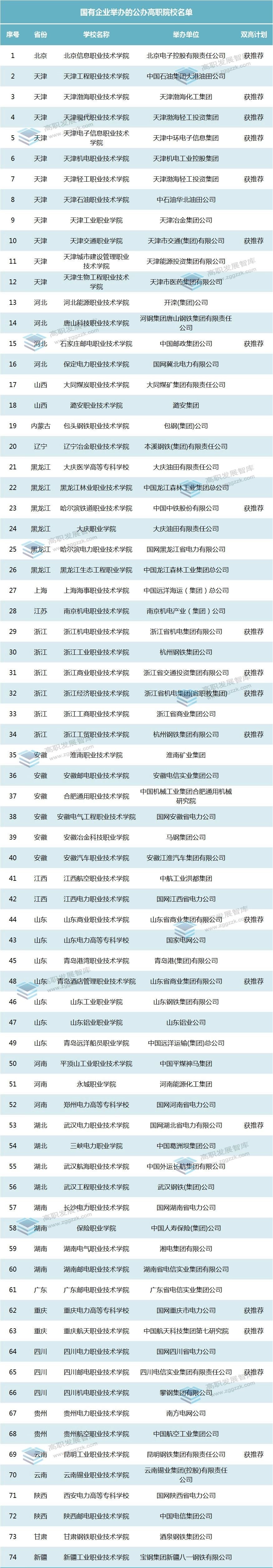 74所由国有企业举办的公办高职院校