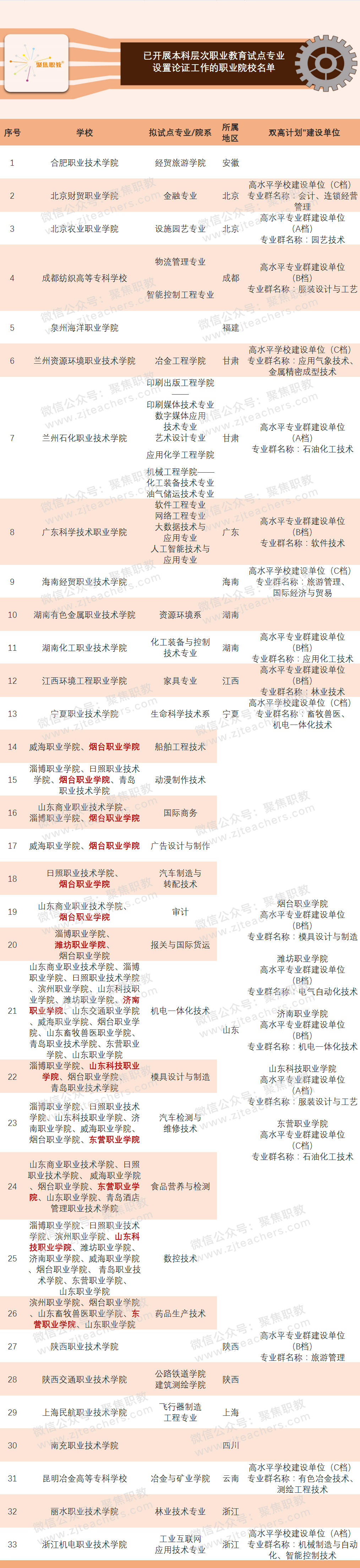 按照山东省教育厅的部署与分工,各职校对各自牵头组织的专业积极开展设置论证工作,优化专业设置,为申报本科层次职业教育试点夯实基础。值得一提的是,在各职校申报的试点专业中已有多数专业与《本科层次职业教育试点专业目录(试行)》相对应,无需进行专业设置论证。