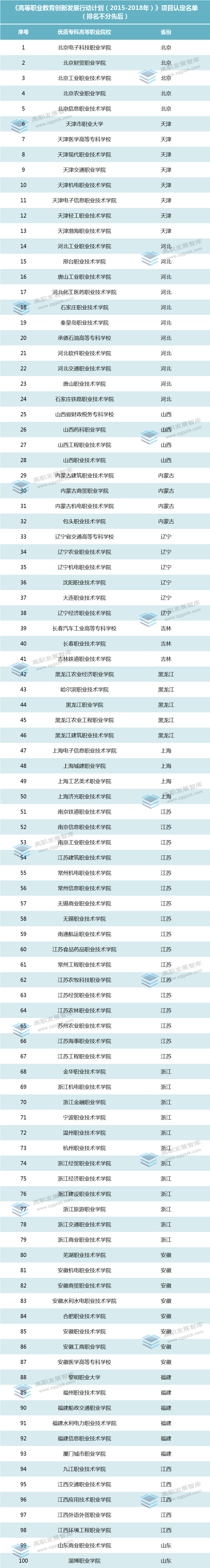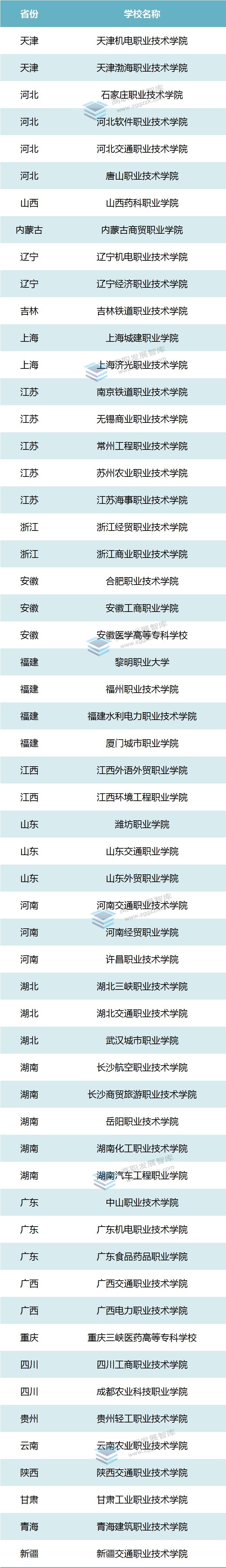 入选“国家优质校”的57所非国家示范、骨干校名单(排序不分先后):