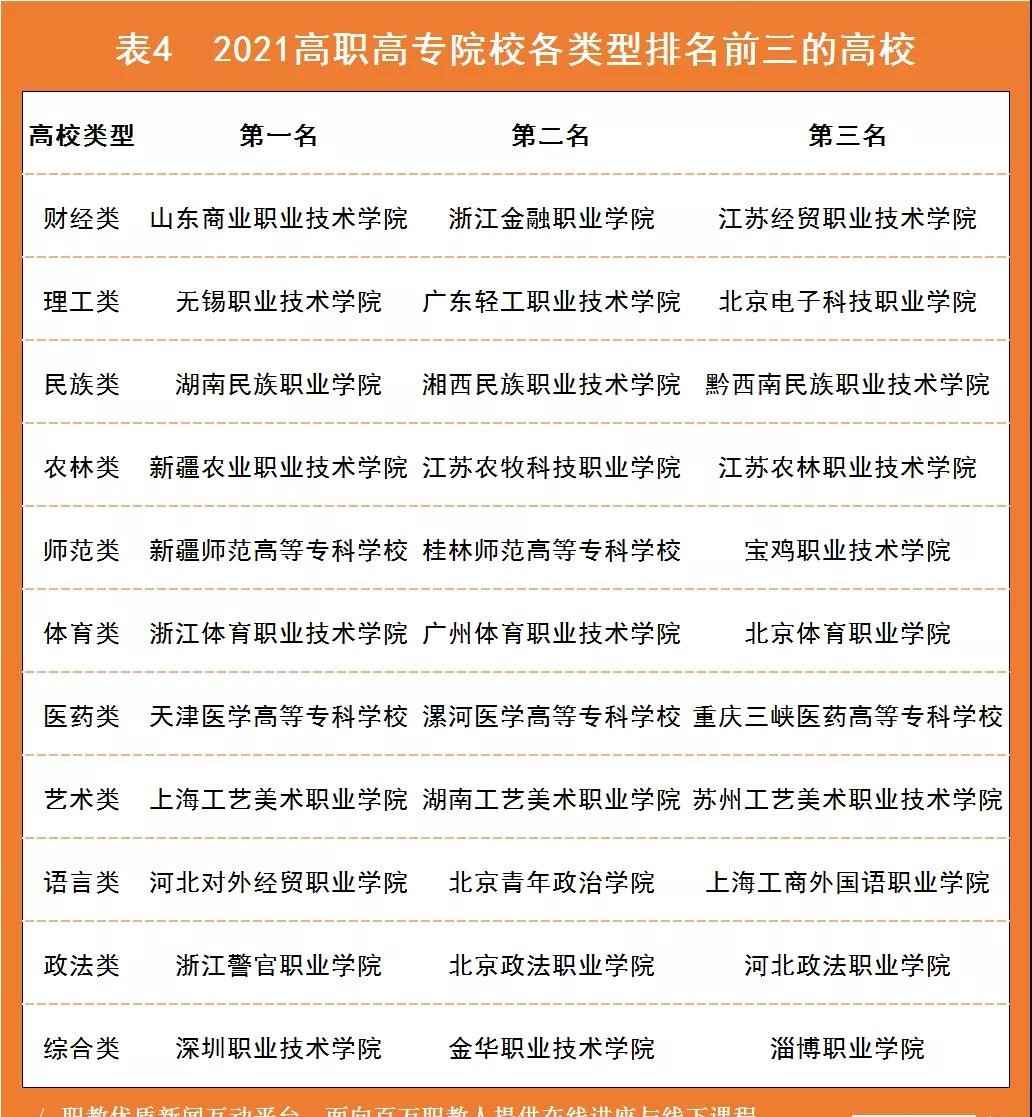 “金平果”2021中国高职高专院校竞争力排行榜(800强)