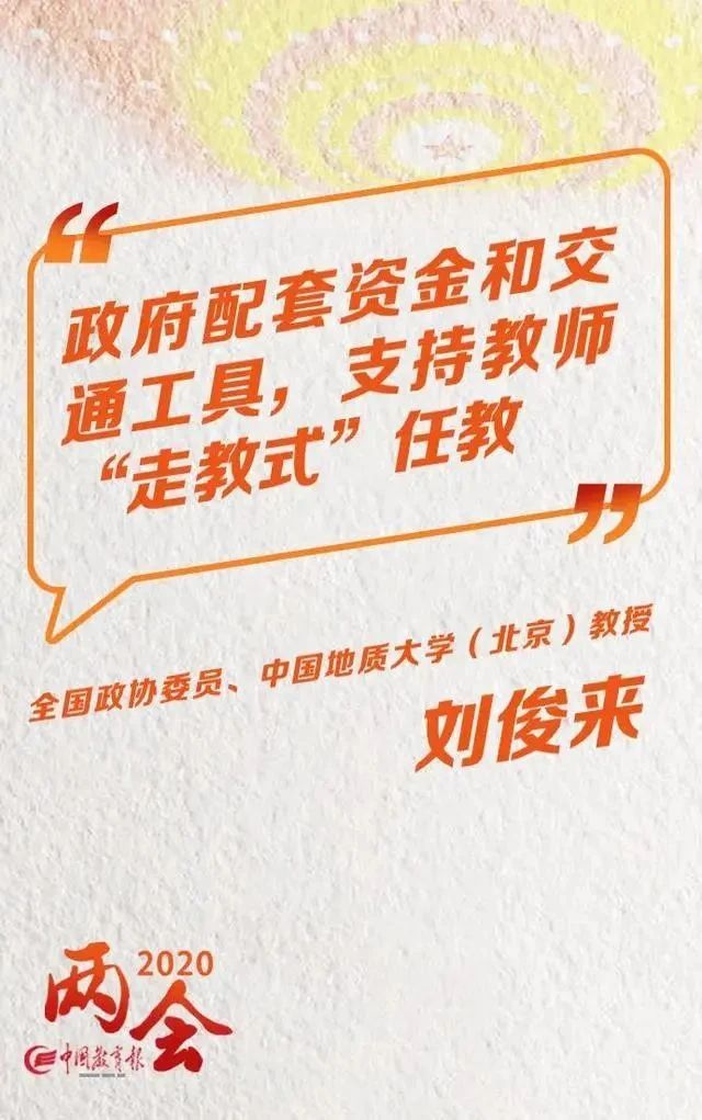 全国人大代表、湖北省人大常委会副主任、华中师范大学教授周洪宇建议,出台针对集中连片特困地区乡村教师等专业技术人才在编制、待遇上的激励措施,进一步建立和完善城乡校长、教师轮岗交流、奖惩激励体制机制。加大乡村教师补充力度,加大实施特岗教师计划力度,储备一批农村教师,形成梯次配备结构。在招收教师时加大县域和乡镇教师比例,提高乡村教师待遇,落实好教师生活补助政策,从根本上改变集中连片特困地区优质教育人才资源流失状况。