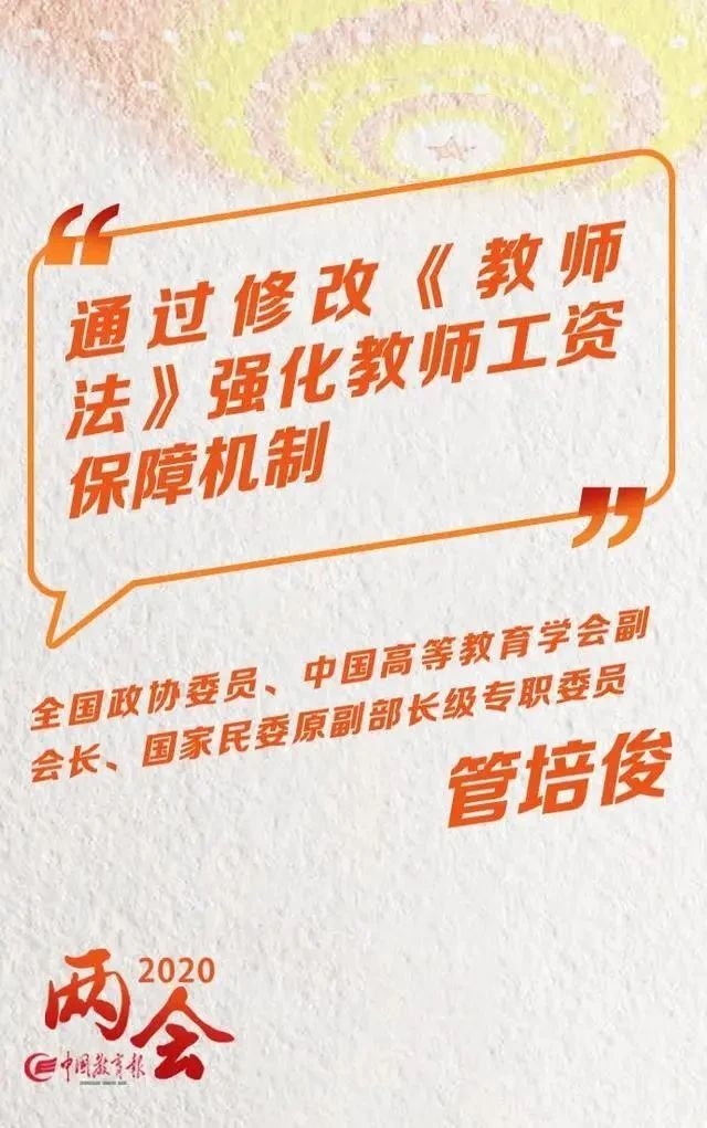 全国政协委员、中国高等教育学会副会长、国家民委原副部长级专职委员管培俊建议通过修改《教师法》强化教师工资保障机制。20多年来,中央与地方政府为教师待遇保障进行了不懈努力,教师薪酬构成发生变化。但国家教育督导报告表明,一些地方“教师年平均工资收入远低于当地公务员”等问题仍然存在,拖欠教师工资时有发生。修法要将“教育投入更多向教师倾斜,保障和提高教师待遇”的要求落到实处。