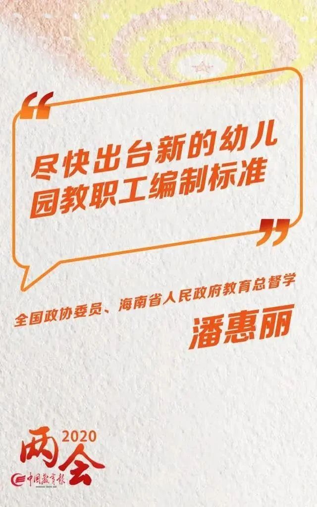 全国政协委员、海南省人民政府教育总督学潘惠丽认为,当前公办幼儿园编制问题已成为制约学前教育事业持续健康发展的瓶颈,建议国家高度重视并加快解决。