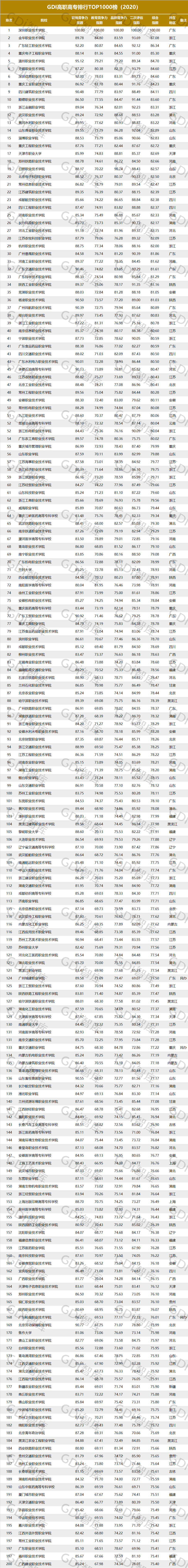 4月22日,广州日报数据和数字化研究院(GDI智库)发布“GDI高职高专排行TOP1000榜(2020)”(以下简称“GDI高职高专榜”),以职场竞争力指数、教育竞争力指数、品牌竞争力指数和二次评估指数四个一级指标建构综合指数,科学评价国内1414所高职高专,推出“GDI高职高专榜”及五个子榜单,分别为“高职高专(公办)TOP300(2020)”“高职高专(民办)TOP100榜(2020)”“高职高专(职场竞争力)TOP100榜(2020)”“高职高专(教育竞争力)TOP100榜(2020)”“高职高专(品牌竞争力)TOP100榜(2020)”。