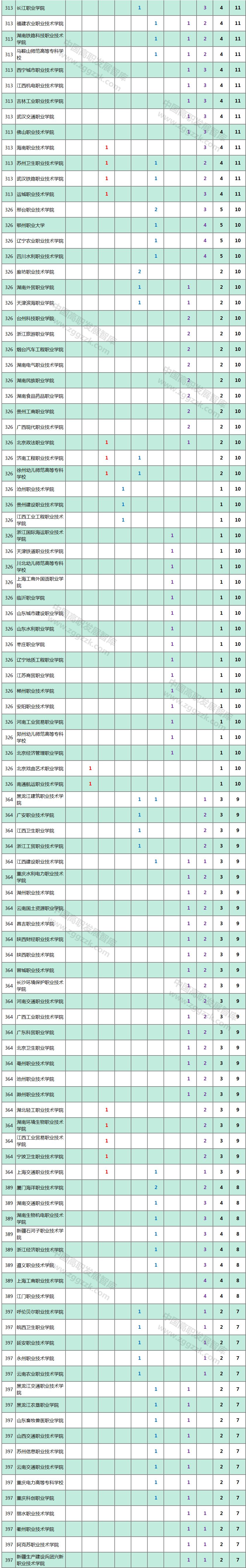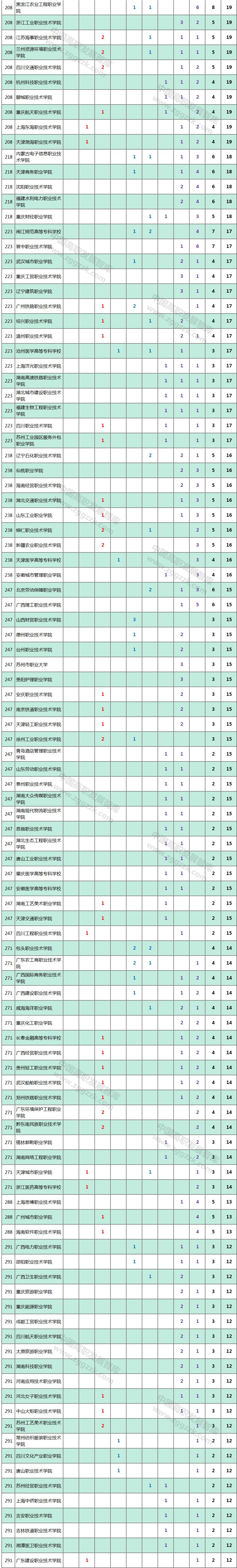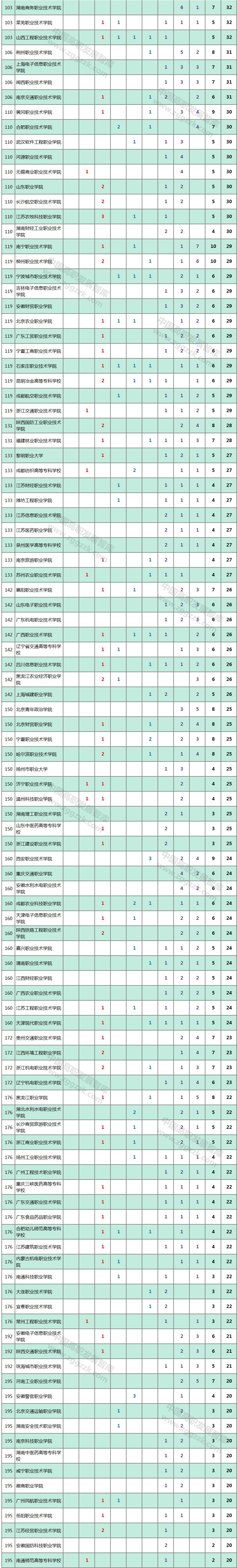 福建船政交通职业学院、北京电子科技职业学院、福建信息职业技术学院、顺德职业技术学院、天津职业大学、长沙民政职业技术学院均登上榜单前10。前10名院校均为国家示范(骨干)院校,其中北京电子科技职业学院是唯一囊获了三大奖项一等奖的高职院校。