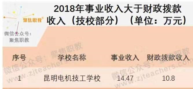 2018年,仅有昆明电机技工学校事业收入超过财政拨款收入.