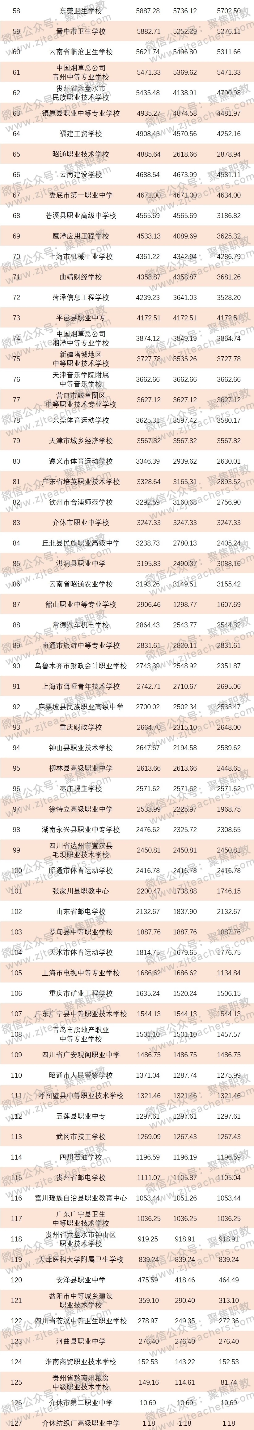 值得警醒的是,同样是区域总决算中位数top1,高职36359.08万元(广东省)是中职9394.23万元(上海市)的近4倍,中职惨被碾压。这一方面说明高等教育比高中阶段更“烧钱”,同时也昭示着,本就发展基础比较薄弱的中职教育也在遭受事实上的“不平等”。