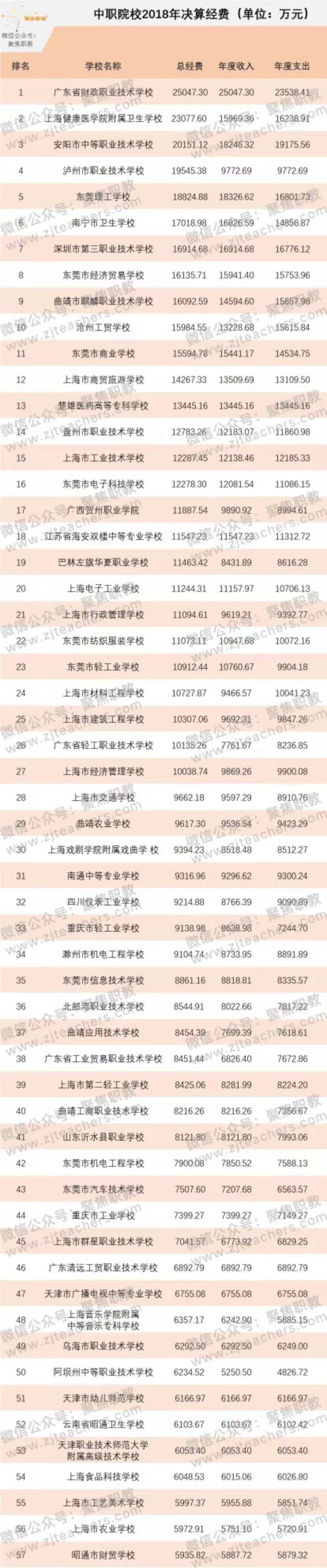 2018年,上海健康医学院附属卫生学校总决算金额比去年下滑14152.26万元,排名也从第一降到第二名。同时,广东省财政职业技术学校成最大黑马。安阳市中等职业技术学校、泸州市职业技术学校、东莞理工学校、南宁市卫生学校、深圳市第三职业技术学校、东莞市经济贸易学校、曲靖市麒麟职业技术学校和沧州工贸学校亦榜上有名。