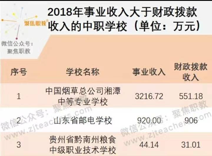 2018年,也有3所中职院校 “凭自己的本事吃饭”,其事业收入超过财政拨款收入。