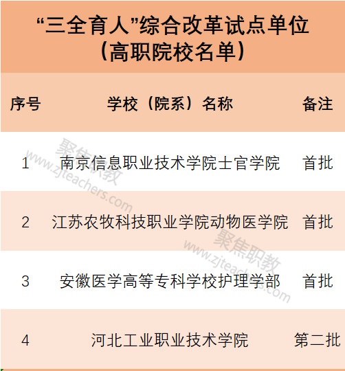 下面聚焦职教为大家一一呈现四大改革试点上榜院校名单。