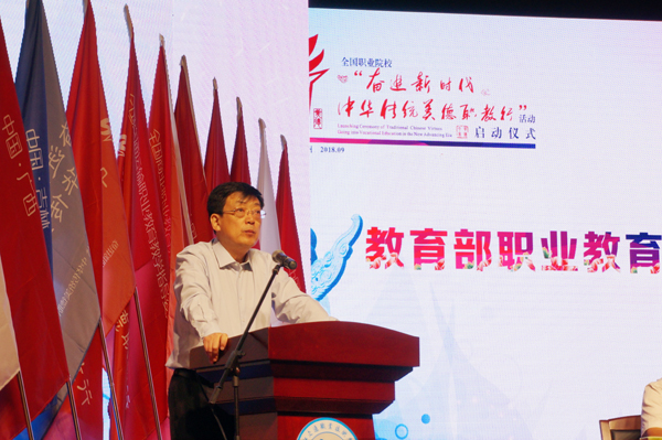 谢俐作题为“弘扬中华传统美德 塑造职教时代新人”的讲话。他表示,“职教行”活动要做好三大工程,一是“固本工程”,“职教行”活动要覆盖所有中等职业学校和高等职业院校、覆盖所有在校学生;二是“底色工程”,“职教行”活动要贯穿人才培养全过程;三是“铸魂工程”,“职教行”活动要融汇到职业教育教材体系中去。