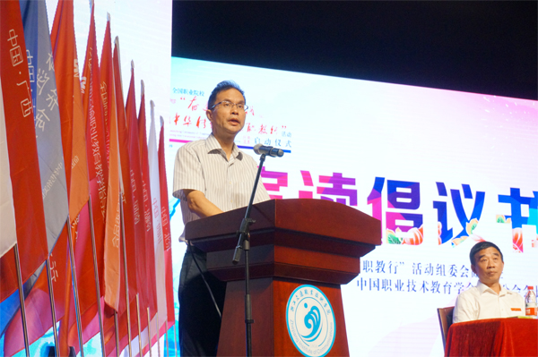 “职教行”活动组委会副主任、中国职业技术教育学会高职分会会长、浙江机电职业技术学院院长丁金昌代表“职教行”活动组委会宣读了倡议书。
