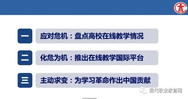 英国正版365官方网站高等教育司司长吴岩《应对危机 化危为机 主动求变 做好在线教育国际平台及课程资源建设》PPT报告完整全文如下:
