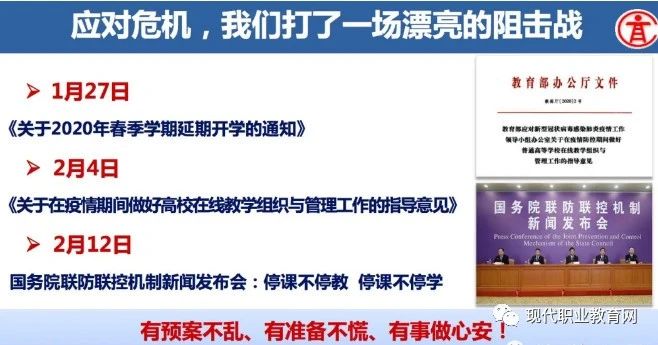 吴岩表示,敢于提出“停课不停教,停课不停学”,敢于要求所有高校实行线上教学, 不是一时脑子发热,是心里有底气的。“几年来的战略布局和精心建设在危机时刻派上用场”。