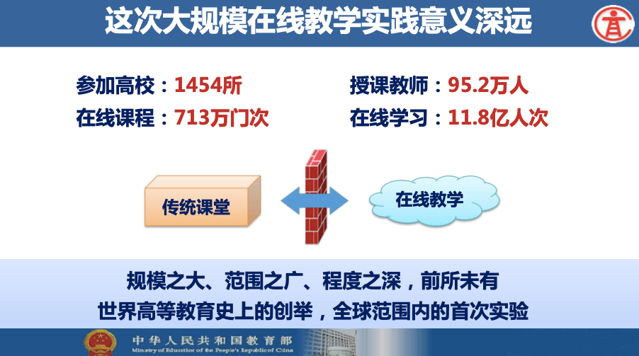 吴岩指出,本次在线教学实践,规模之大、范围之广、程度之深,前所未有,不仅是世界高等教育史上的首次探索,也是全球范围内的重要实验。