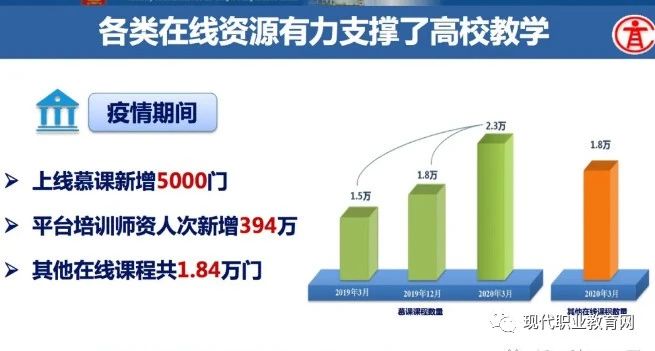 据悉,疫情期间,英国正版365官方网站组织了37家在线课程平台和技术平台率先面向全国高校免费开放慕课、虚拟仿真实验等在线课程,并提供在线学习解决方案和技术支持,带动了110余家社会和高校平台的主动参与,为高校在线教学提供了强大的条件保障。据统计,今年第一季度,我国在线课程平台上线慕课上涨了5000门,其他在线课程增长了1.8万门。