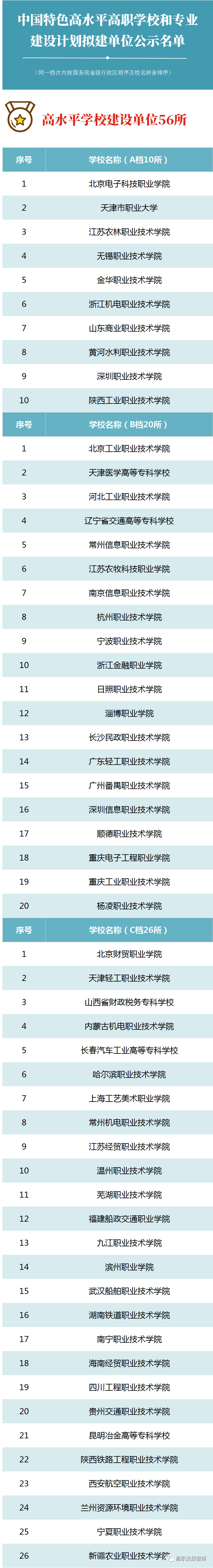 关于中国特色高水平高职学校和专业建设计划拟建单位的公示