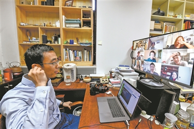 疫情期间,清华大学新闻与传播学院副教授梁君健在办公室进行远程授课,讲授摄影课程。邓伟 摄