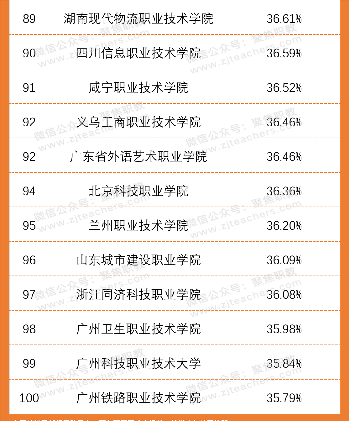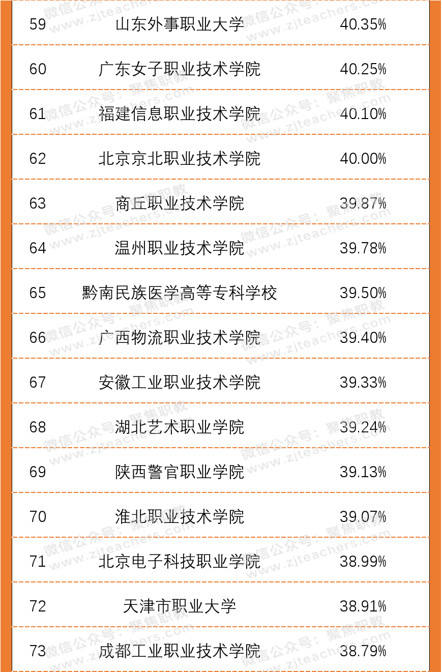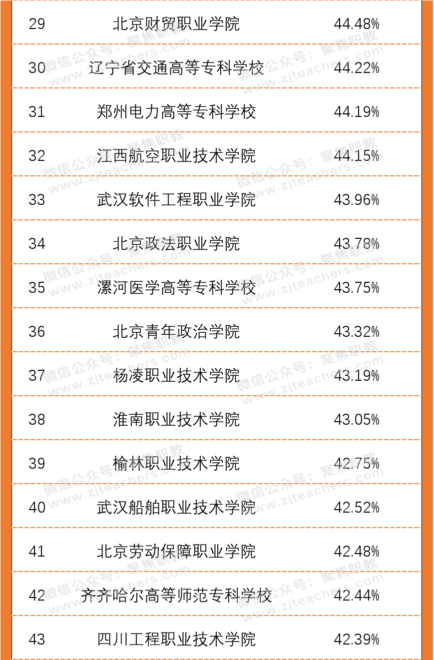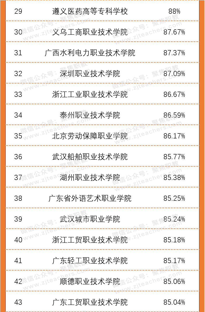 从2020年高职院校双师素质专任教师百强榜单中可以看出,广东水利电力职业技术学院以98.13%的双师素质教师领先,紧随其后的是无锡商业职业技术学院,双师教师占比94.29%,排第三的是襄阳职业技术学院,双师教师占比93.40%。
