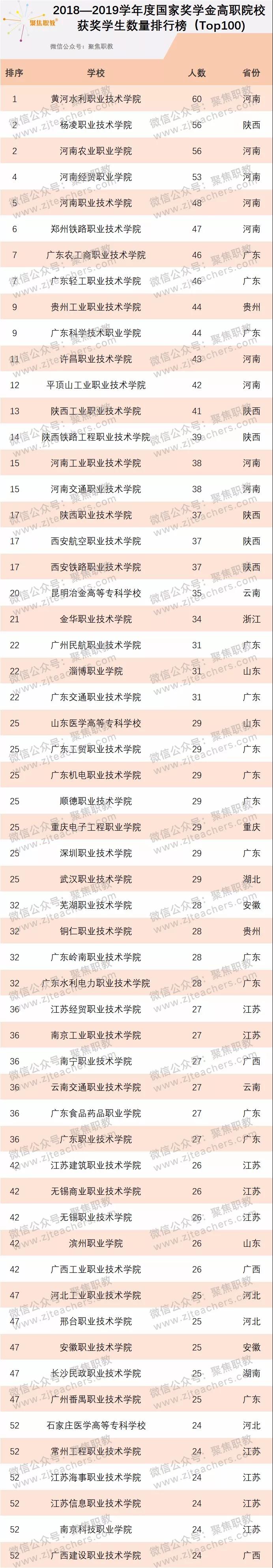 2018—2019学年度国家奖学金——高职院校获奖学生数量排行榜(Top100)