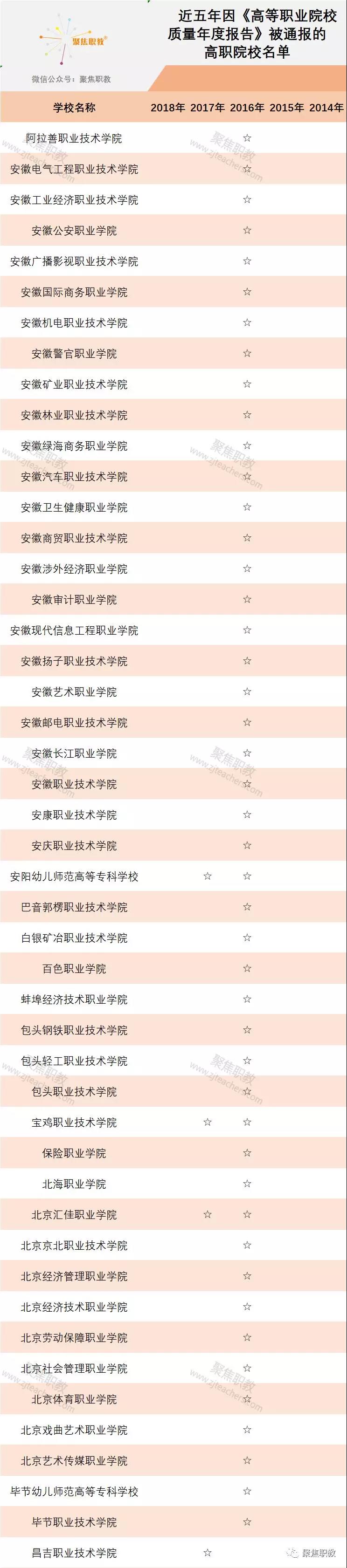近五年每一年被通报的高职校名单及通报原因
