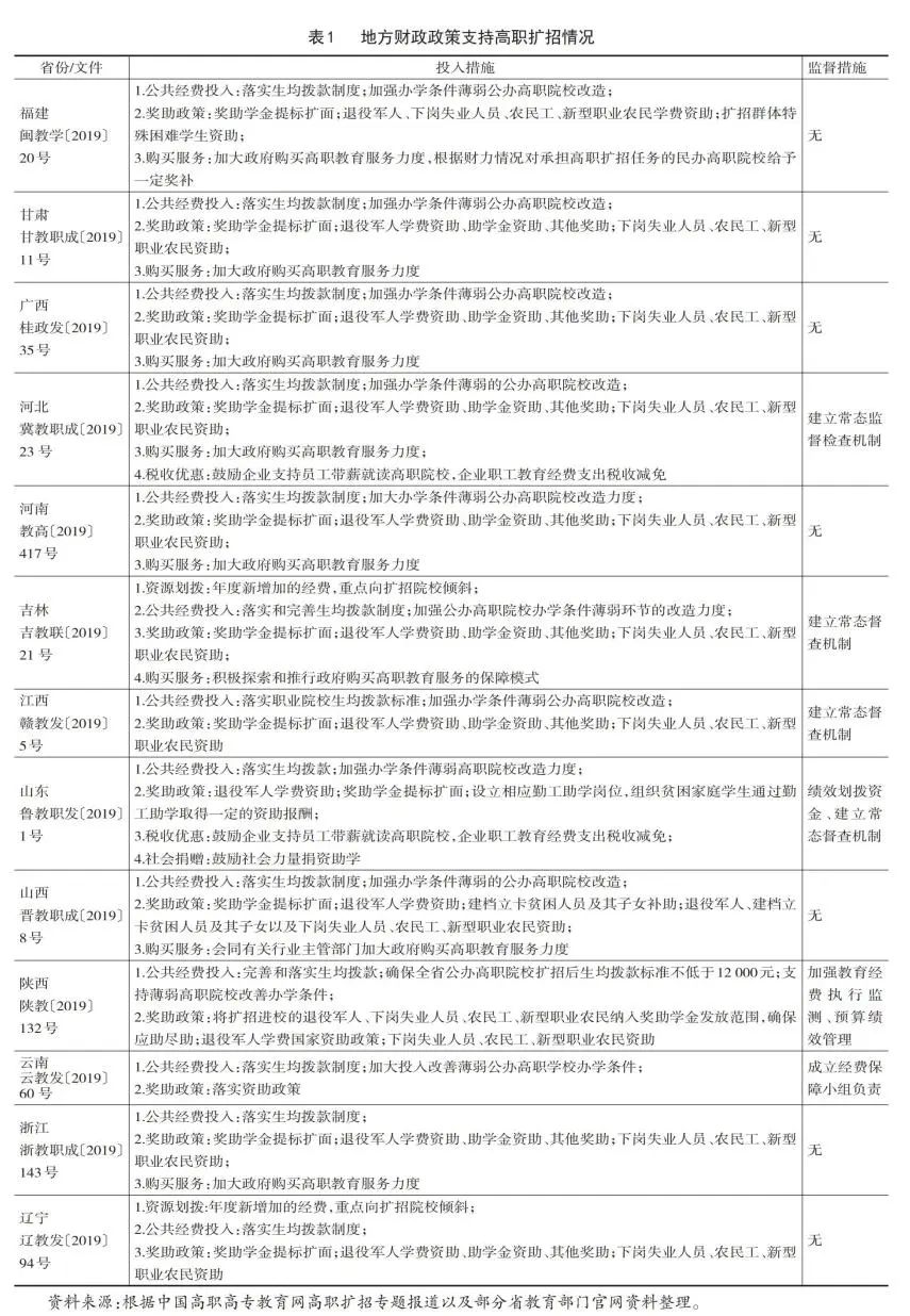 一、地方出台支持高职扩招财政政策的基本情况