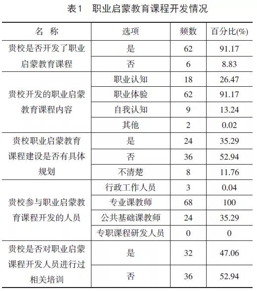 (一)关于职业启蒙教育课程建设的调查