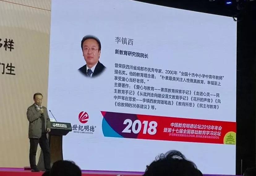 2018年11月5日,李镇西老师在世纪明德论坛上演讲《人是教育的最高价值》